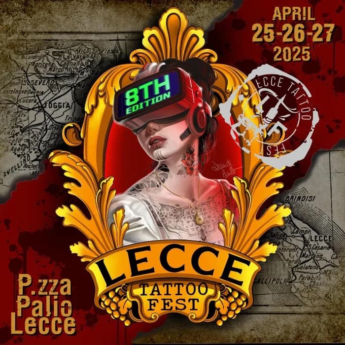 25.26.27 APRILE 2025 il Lecce Tattoo Fest torna in Piazza Palio. Dopo l'incredibile successo dell'edizione 2024, ci stiamo preparando per un altro indimenticabile festival del tatuaggio nazionale e internazionale nel caldo Salento! Unisciti a noi per un fine settimana pieno di arte del tatuaggio di livello mondiale, dimostrazioni dal vivo e una vibrante comunità di tatuatori e amanti del tatuaggio!!! Se non siete appassionati di tatuaggi o non ne sapete nulla? Non perdete l'occasione di incontrare gli artisti e magari di farvi fare un tatuaggio da uno dei migliori tatuatori del Lecce Tattoo Fest 2025!!! Segnatevi il calendario, chiamate i vostri amici e non mancate!